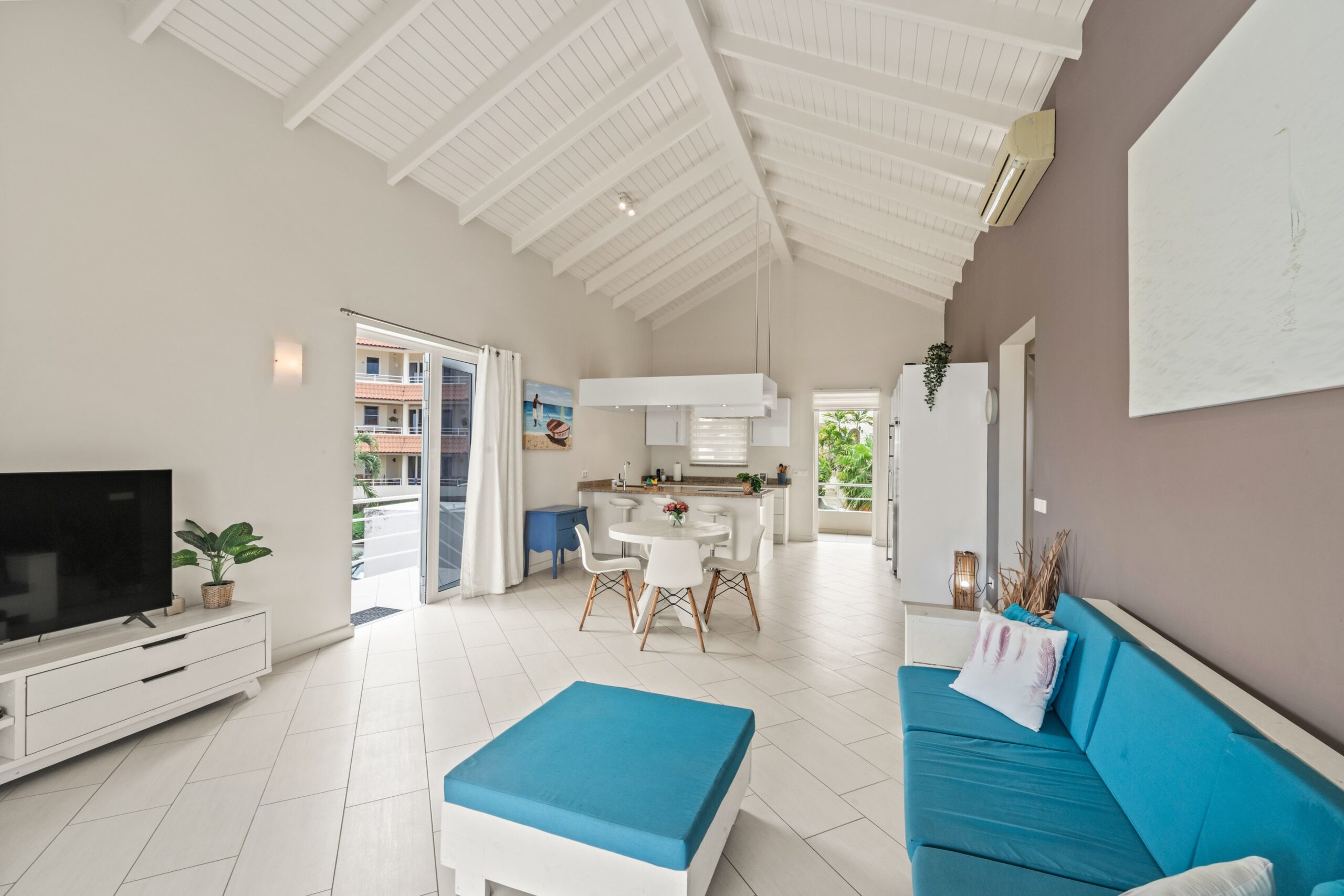 Het appartement is ruim, licht en met zorg ingericht in een smaakvolle, eigentijdse stijl. Met twee comfortabele slaapkamers, een royale badkamer en een volledig uitgeruste keuken is dit de ideale plek voor stellen, vrienden of een klein gezin. De open woonruimte sluit direct aan op het grote privéterras, vanwaar u wordt getrakteerd op een adembenemend panoramisch uitzicht over de azuurblauwe Caribische Zee – het perfecte decor voor uw ochtendkoffie of een zwoele avond met een glas wijn.