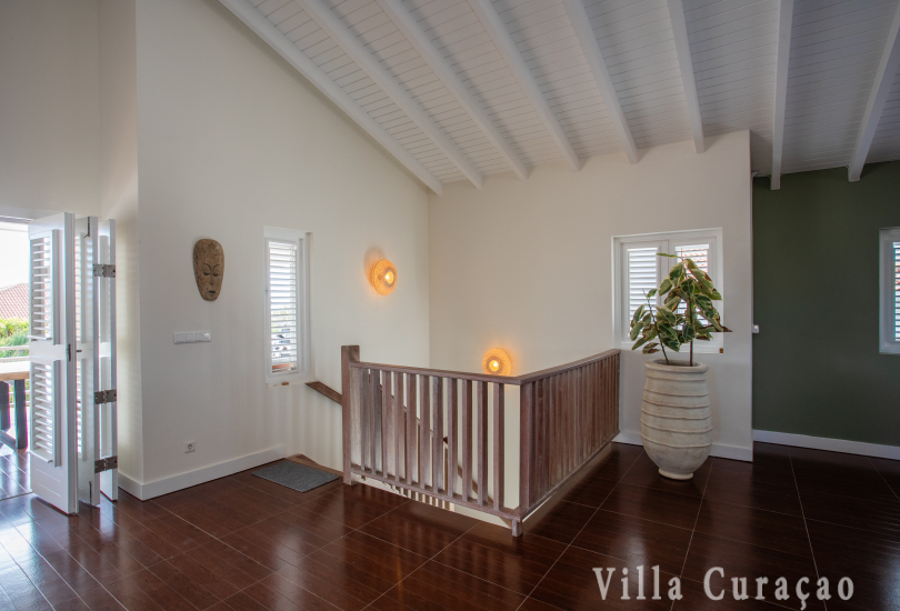 Via de trap bereikt u de bovenverdieping, waar een ruime en lichte woonkamer met open keuken en kookeiland zich bevindt. Vanaf hier heeft u een schitterend uitzicht over de Caribische Zee. Ook op deze verdieping: de zesde slaapkamer met en suite badkamer en walk-in closet.