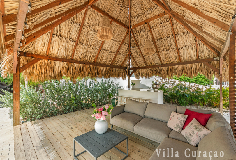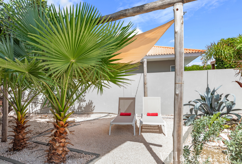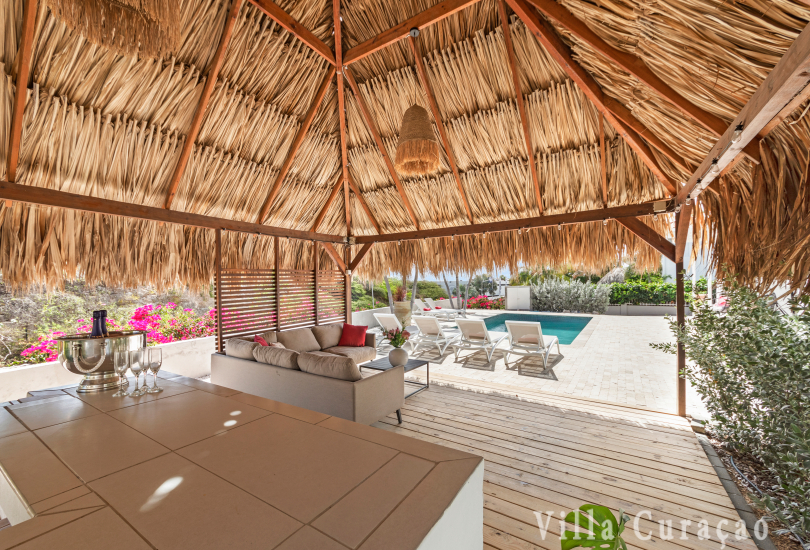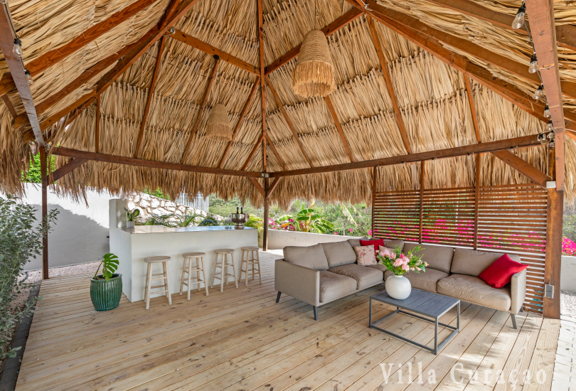 Buiten wacht een groot balkon met zitgedeelte, grote eettafel en BBQ: dé plek om samen te eten, borrelen of gewoon van het uitzicht te genieten. In de tropische tuin ligt het privézwembad met royaal pooldek en comfortabele ligbedden. Liever wat schaduw? Dan biedt de palapa een heerlijke, beschutte plek om te ontspannen.