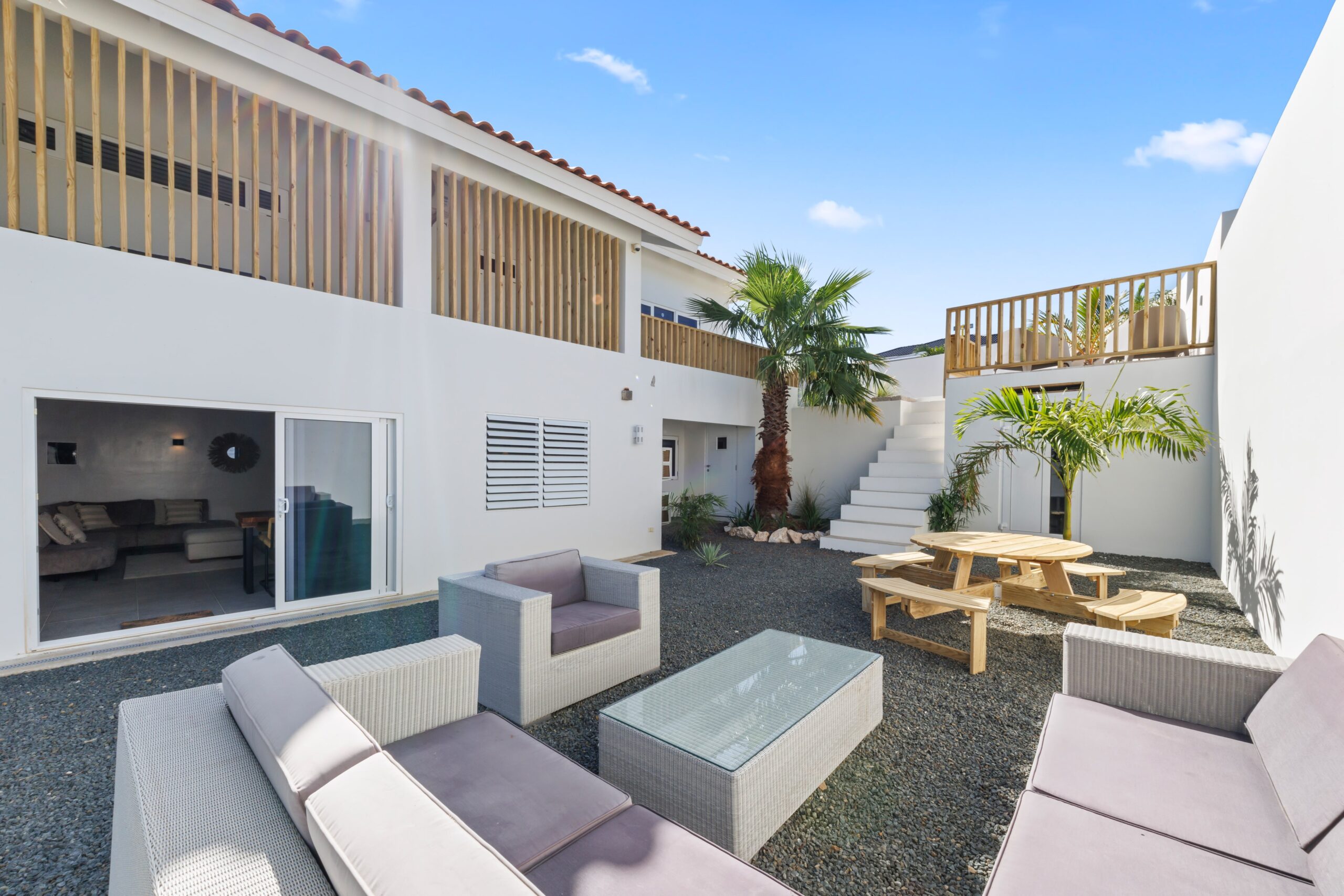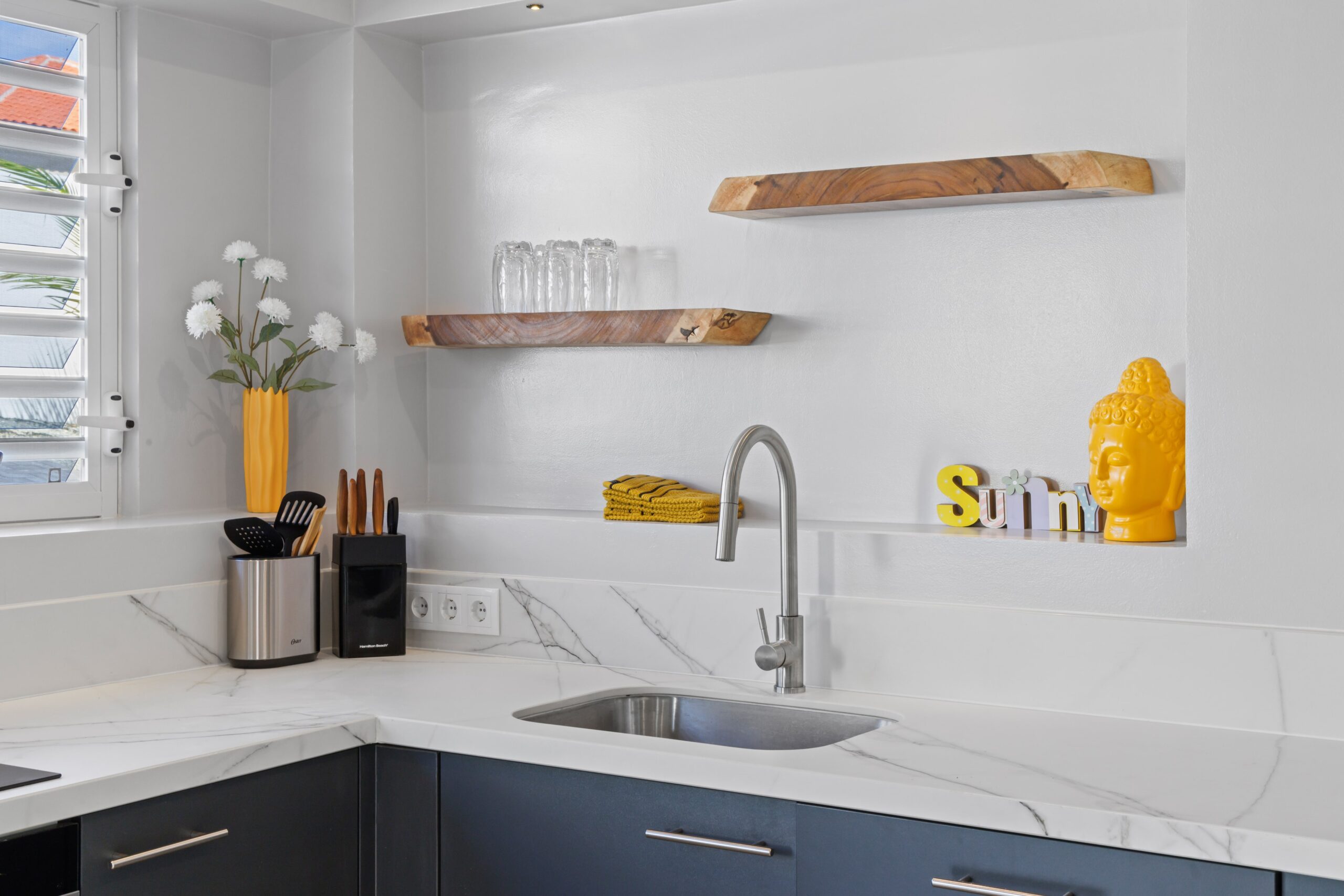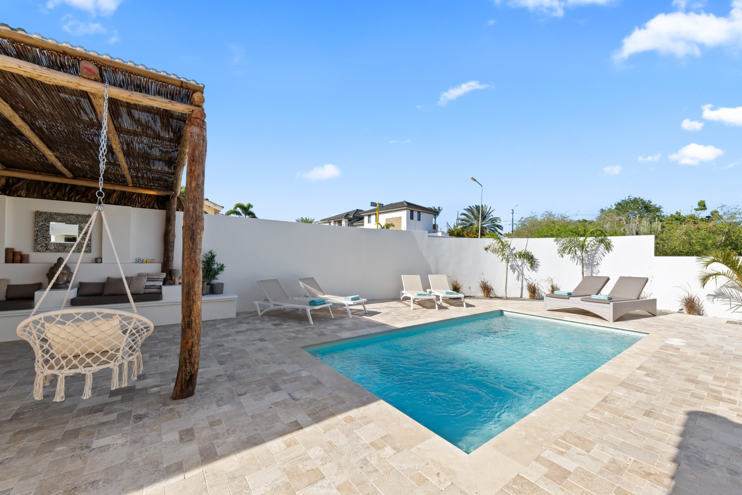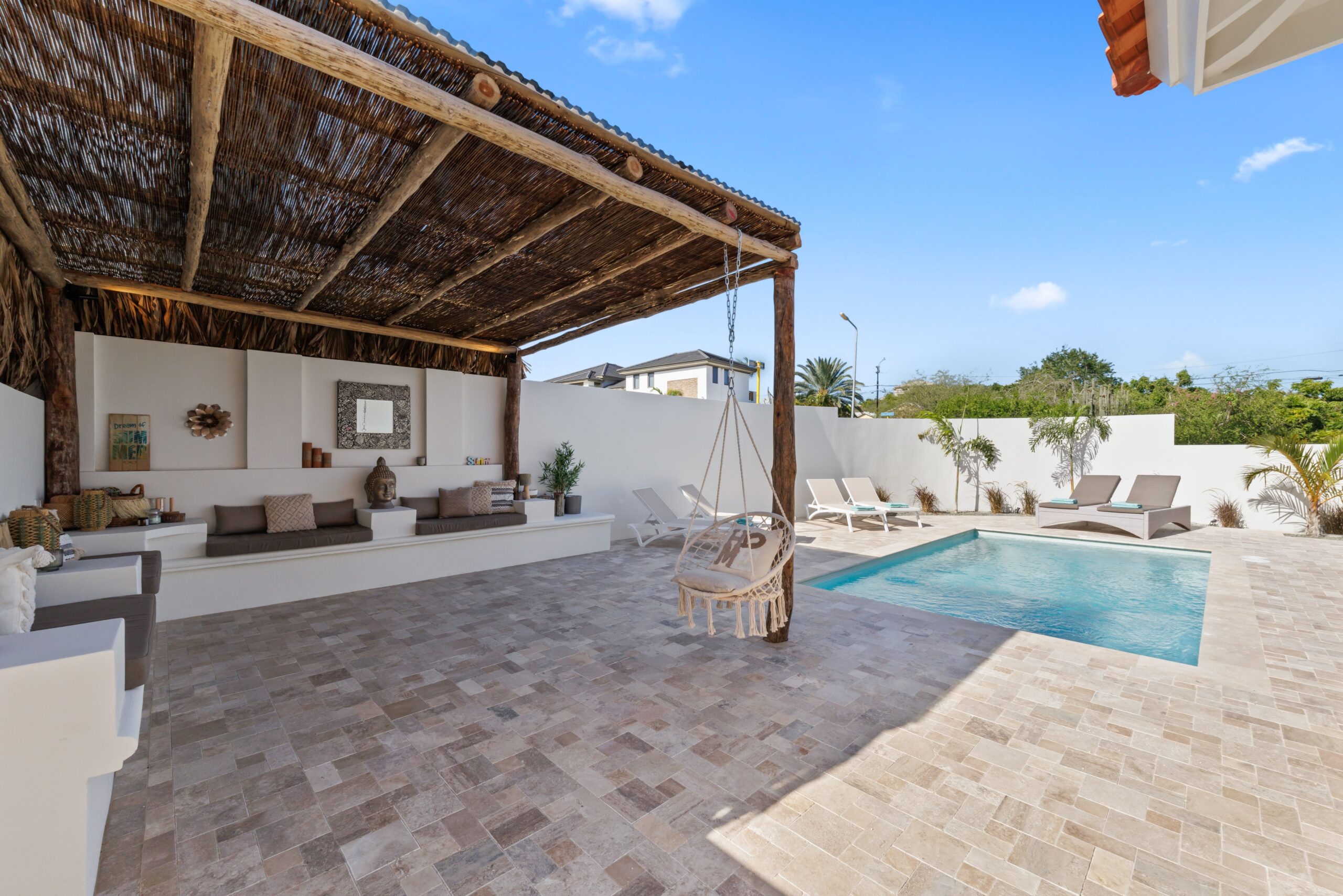 Binnen vind je een grote open keuken die van alle gemakken is voorzien. Zin in een uitgebreid diner of gewoon een snelle snack? Alles ligt al klaar. Buiten staat je een privézwembad te wachten, omringd door meerdere gezellige zithoekjes. Perfect voor een goed boek, een borrel of gewoon lekker niets doen (waar op Curaçao niemand je ooit op aankijkt).