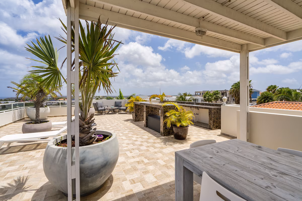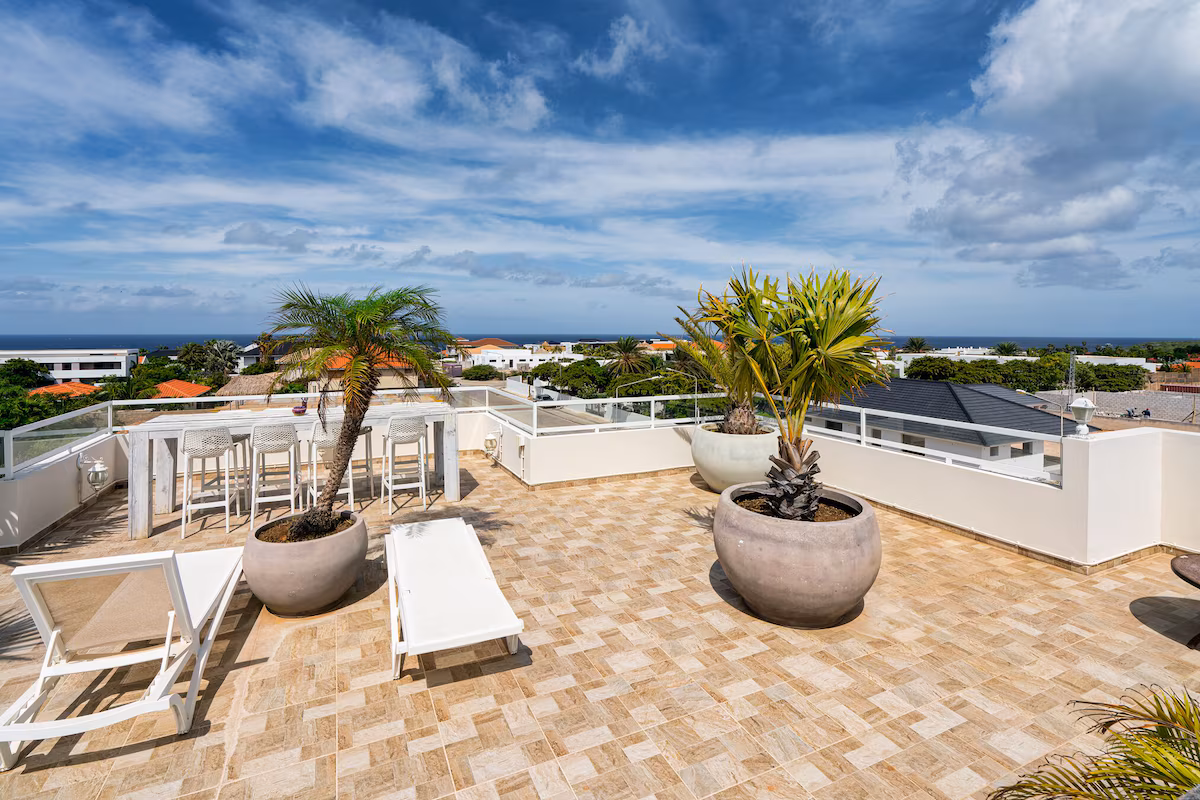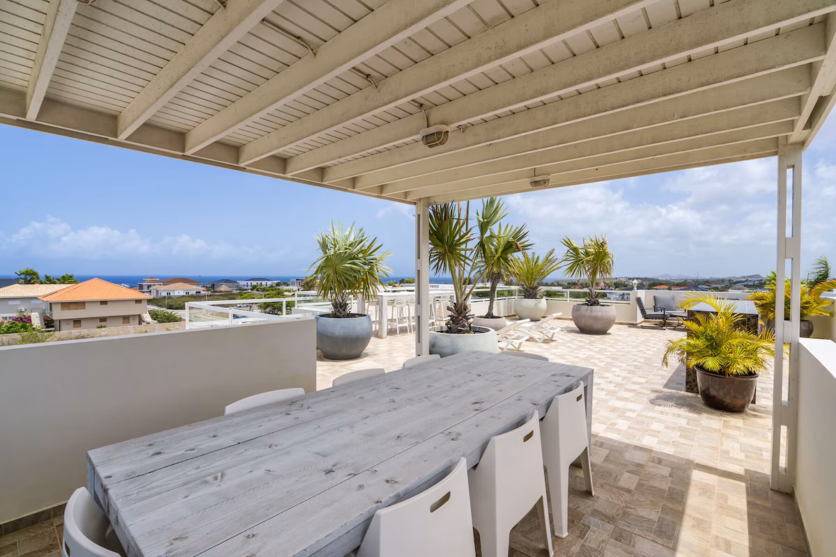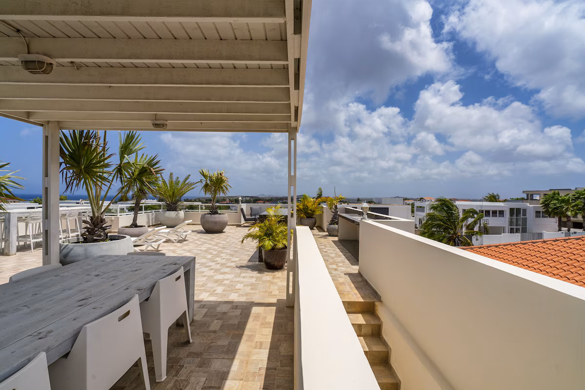 Vanuit het indrukwekkende dakterras heb je een adembenemend uitzicht over de Caribische Zee, de Tafelberg en het Spaanse Water – een plaatje om nooit te vergeten.