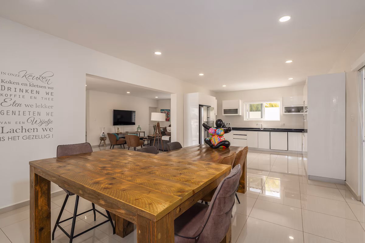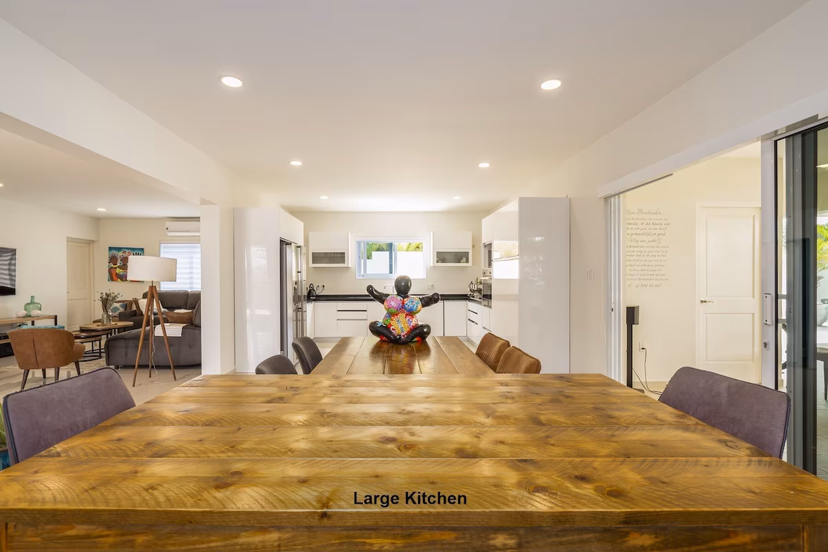 Deze ruime villa met vijf slaapkamers en vijf badkamers voelt als een privéresort. Zodra je door de elektrische poort rijdt, parkeer je comfortabel in de schaduw van de carport, met plek voor drie auto’s. Het privézwembad nodigt uit voor een verfrissende duik, terwijl het overdekte terras met gezellige zithoek en grote eettafel perfect is om te ontspannen of heerlijk buiten te eten. Voor de fijnproever is er een Big Green Egg rookoven en een gasbarbecue, naast een moderne keuken die van alle gemakken is voorzien.